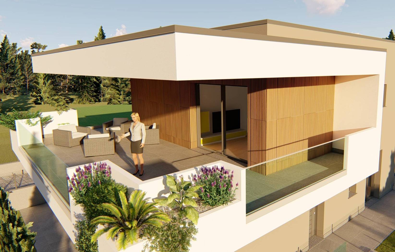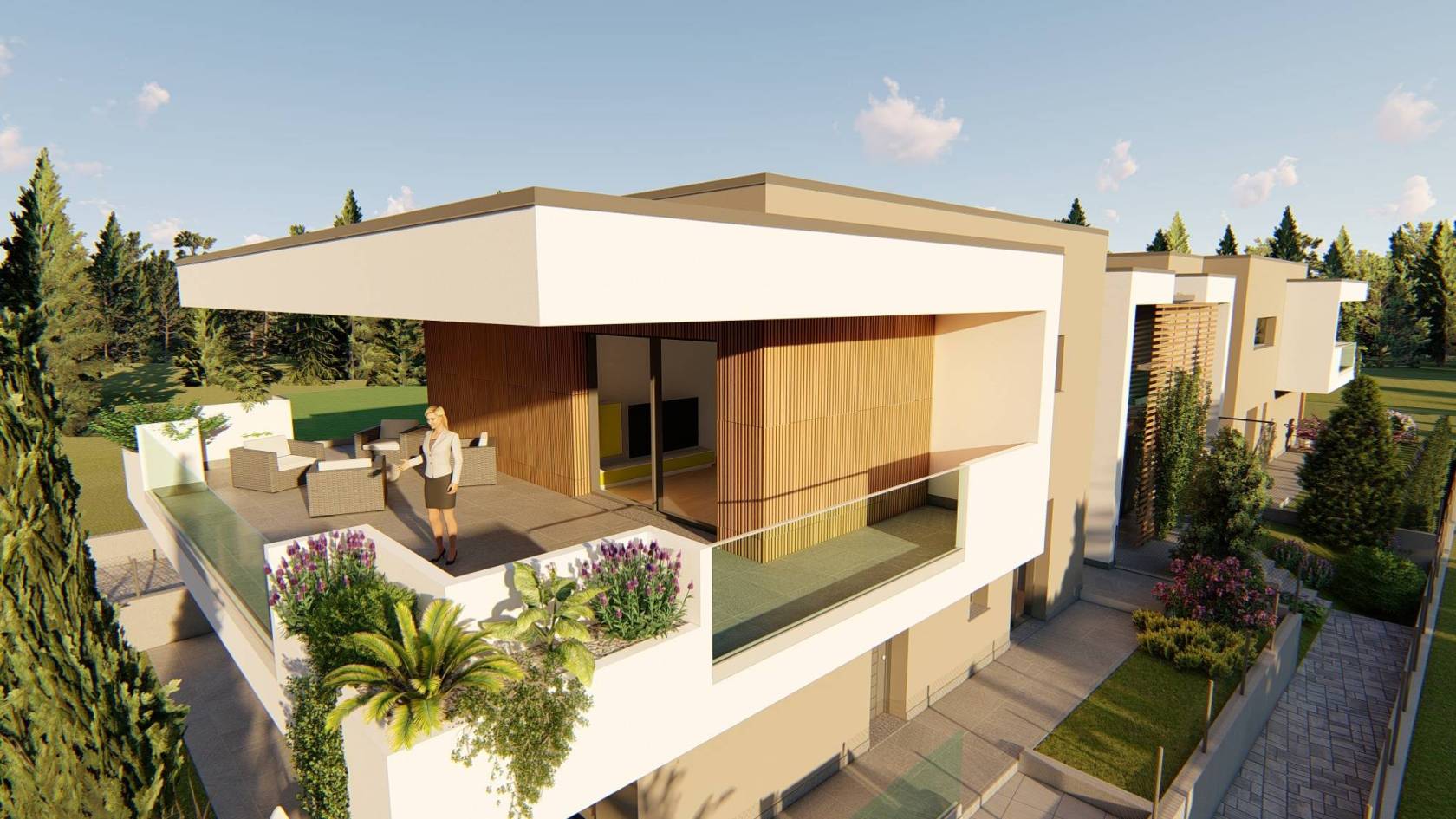 Per garantire il massimo comfort, ogni unità è dotata di basculante box motorizzata , sanitari sospesi e illuminazione esterna a LED di ultima generazione che crea un'atmosfera suggestiva. Le pavimentazioni sono di primarie marche nazionali, garantendo così un'estetica raffinata e una lunga durata.